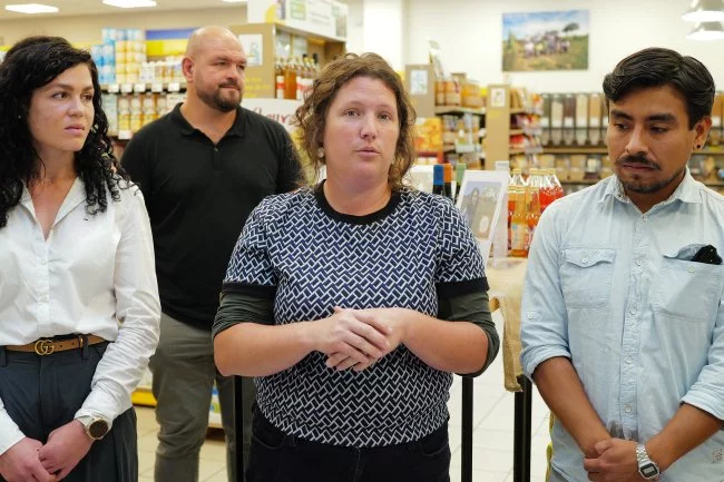 Sur les photos : Les producteurs travaillant avec l’enseigne So.bio dont Justin Tarlier-Doecke et ses boissons au Kamboucha ; le vin bio du chateau Boujac ; Carine Lopez du Bio dans l’assiette qui produit une gamme de farine, légumineuses, huiles et pâtes à Mirepoix ; le chocolat de Gouga Cacao (Foix) ; Marianne Dupuy, éleveuse bovine à Clermont ou encore Sébastien Derroisné, qui a monté il y a dix ans une brasserie artisanale à Verfeil, à l’est de Toulouse était présent pour la conférence de presse dans les locaux de So.bio Toulouse avec Pierre-Yves Fournet, directeur général de So.bio. Crédit : Rémy Gabalda-ToulÉco.