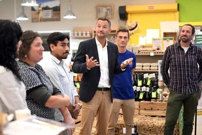 « Aujourd’hui, nous voulons accélérer sur la dimension production locale. C’est une demande de nos clients. Nous faisons travailler 1750 producteurs locaux au niveau national. L’idée est que, grâce à cette nouvelle stratégie, 10 à 12 % du chiffre d’affaires de chaque magasin soient réalisés grâce aux produits locaux. Aujourd’hui, en général, on est plus près des 8 % », détaille Pierre-Yves Fournet, directeur général de So.bio. Outre le supermarché de Toulouse, "Je suis du coin" va être testé à Muret (Haute-Garonne) et à Alès (Gard). Muret va passer de 315 à 490 références locales, Alès de 385 à 500 et Toulouse de 375 à plus de 530.